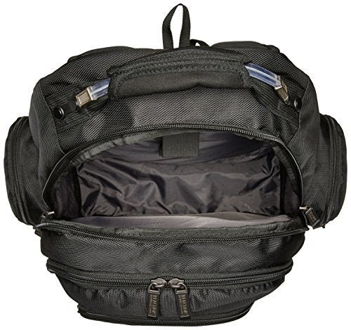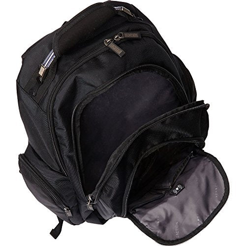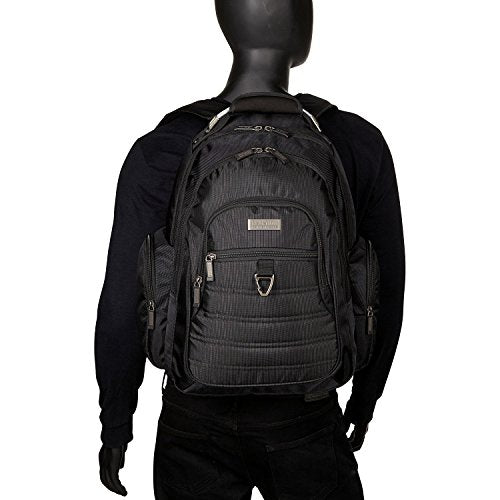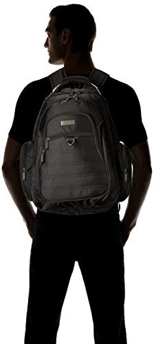 Details: 1680d polyester dual compartment 15.6" computer backpack. Rfid blocking technology offers protection in front compartment pockets. Fits most laptops with up to 15.6" screens. Tablet compatible. 1680d poly exterior with fully lined interior. Front exterior consists of a small easy access zipper pocket, convenient key clip, and a gusseted zip around pocket with an extensive, multi-pocket business organizer. 2" gusseted front file compartment. Roomy main compartment features padded laptop. Dual side exterior gusseted, zip around pockets. Durable, cable top handle with comfortable, padded grip and convenient loop for hanging. Rear exterior features ultra padded air mesh back panel, adjustable shoulder straps padded with breathable air-mesh, adjustable sternum straps, and trolley tunnel that fits over most luggage upright handles. Overall size: 19.0" h x 13.5" w x 9.5" d computer pocket dimensions: 15.25" h x 12.0" w x 1.5" d