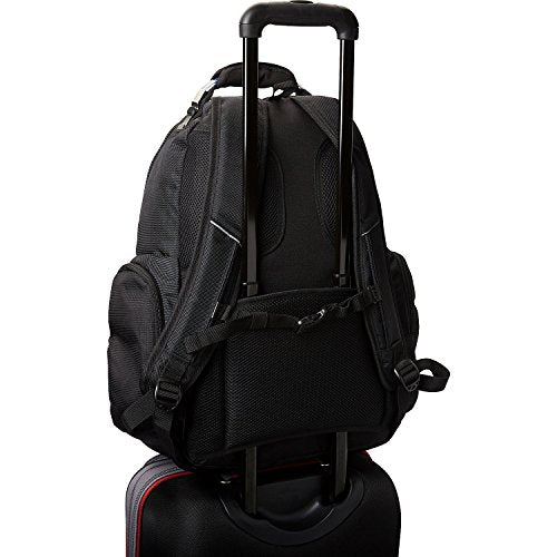 - Durable, cable top handle with comfortable, padded grip and convenient loop for hanging. Rear exterior features ultra padded air mesh back panel, adjustable shoulder straps padded with breathable air-mesh, adjustable sternum straps, and trolley tunnel that fits over most luggage upright handles. Overall size: 19.0" h x 13.5" w x 9.5" d. Computer pocket dimensions: 15.25" h x 12.0" w x 1.5" d