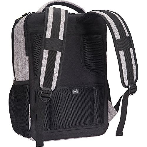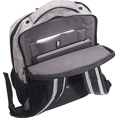 Details: Radio frequency identification (RFID) Blocking technology helps to prevent electronic theft on rear trolley tunnel padded computer compartment fits most 17" Laptops padded tablet pocket accommodates most tablets stylish, dobby polyester exterior and a tear-resistant, fully lined interior with color pop accent front exterior features a vertical zipper pocket that opens to an organizer made to hold a variety of business essentials dual side exterior open elastic top mesh water bottle/ accessory pockets and padded, easy to grab top handle roomy front compartment includes a mesh zipper pocket, two gusseted open top pockets, and a full length elastic top pocket, with plenty of room to hold other needed belongings Rear compartment is fully padded to hold and protect your laptop and includes a padded tablet pocket Rear exterior features a mesh back panel, a trolley tunnel that fits over most luggage handles for hands free carrying, and adjustable, padded shoulder straps with multiple accessory loops and sternum strap overall Dimensions: 17.0" H x 12.0" L x 6.0" D laptop pocket Dimensions: 15.5" H x 10.5" L x 1.25" D Weight: 3.0 lbs. includes a lifetime limited manufactures warranty