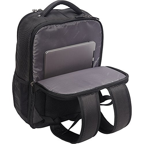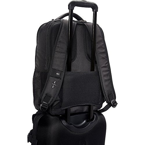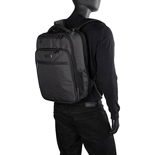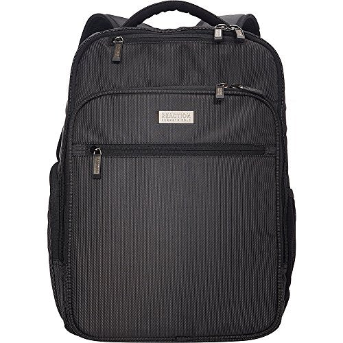 Details: Stroll in style with The Brooklyn Commuter durable 1680D polyester modernized slim double compartment checkpoint friendly EZ-Scan 15.0 laptop business backpack with RFID protection and rear trolley tunnel stash pocket from Kenneth Cole Reaction (eBags Exclusive. This backpack may fit up to a 17 laptop in many cases as well. This slim business computer backpack boasts many interior pockets and compartments for all your business essentials while still maintaining a compact slim construction. The perfect modern professional laptop backpack for travelers whom value both style and functionality.