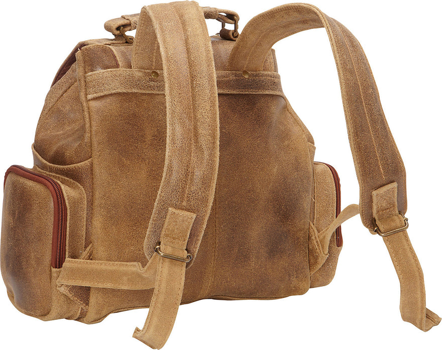 This Le Donne distressed leather backpack has classic styling in a contemporary design. The old school look of the distressed leather gives this leather bag a vintage feel but with all the pockets you have plenty of room for all your modern gadgets. To top it all the leather just keeps getting better with time.