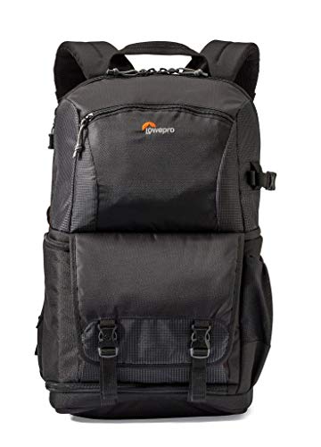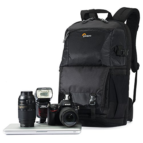 Secure the Fastpack backpack to a rolling trolley via the compression straps, and keep valuable gear protected from the elements with the built-in All Weather AW Cover. The padded and removable waistbelt offers extra comfort during use, as well as the ability to stash during travel. A tall, stretch-mesh side pocket holds a water bottle or tripod base (secured with side compression straps). The Fastpack BP 250 AW II fits a DSLR with attached lens (such as Nikon D810 with up to 70-200mm f/2.8), 2-3 extra lenses or flashes, up to a 15" laptop plus tablet, a large smartphone, headphones, hard drive, keys, etc.