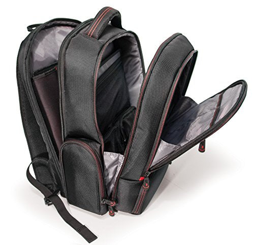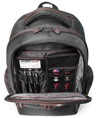 Details: The new Mobile Edge professional backpack may be the most intuitive case we have ever designed. The well thought-out design of this backpack offers the right amount of organized storage space - right where you want it. The professional backpack offers four separate storage sections for all of the gear you need for your daily commute or an overnight trip. This checkpoint-friendly backpack is constructed of durable ballistic nylon and includes padded air-mesh shoulder straps and back panel, a padded top carry handle for easy lifting and a trolley strap for stacking on other luggage. The backpack also features a fully-adjustable and padded laptop compartment for 13" to 16" laptops, a separate fleece lined pouch for an iPad, tablet or e-reader, a unique quick-access accessory pocket and a large section to hold files, extra gear or personal items. A zippered front organizer section provides quick access to pens, cell phone, business cards, keys, cables and other small accessories. Combined with our new matching roller, the Mobile Edge professional cases are the perfect choice for the frequent business traveler.