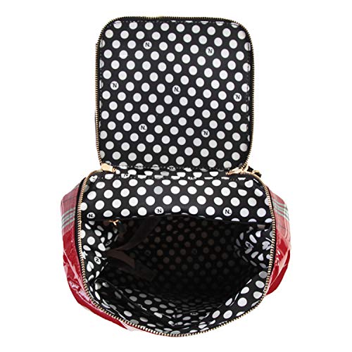 - Interior Features: Zip wall pocket with NL nameplate at back, double open wall pockets at front, vegan leather key chain strap and NL polka dot logo premium lining.
