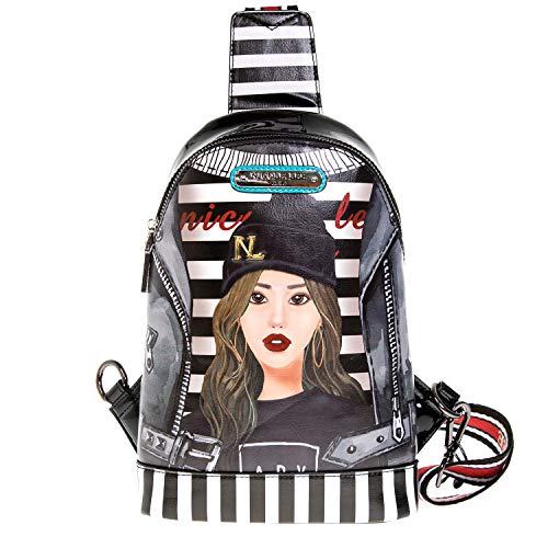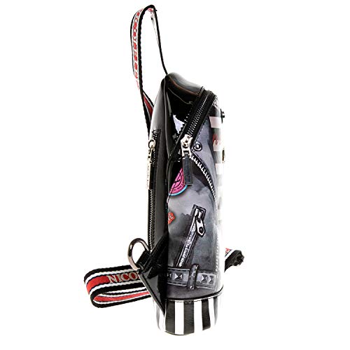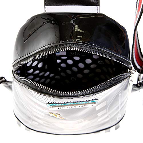 Details: Street chic is easy with the Nicole Lee Paola Is Tomboy Mini Backpack. Exterior Features: Made of vegan leather. Exclusive NL Paola Is Tomboy Design. Metal zipper closure with NL monogrammed zipper pull. Zip back pocket. Adjustable strap. Structured silhouette and NL nameplate at front. Interior Features: Open compartment, zip wall pocket with NL nameplate at back, NL polka dot logo nylon lining. Adjustable 25" - 44" inch strap. Color available Paola Is Tomboy. For cleaning, wipe with damp cloth.