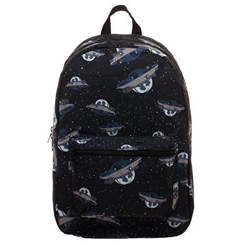 Details: Take an adventure across the universe with this backpack from Adult Swim's Rick And Morty on your back. This officially licensed Rick & Morty polyester backpack features an all over print of the famous Space Cruiser, zippered main compartment, small front zippered pocket, and padded back & adjustable straps.