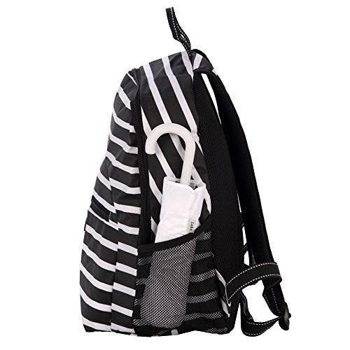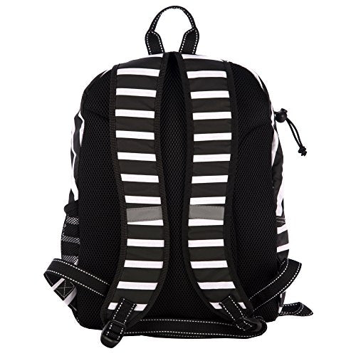- Adjustable straps with reflectors; Loop and bungee pull for athletic gear; Exterior front zipper pocket and side mesh pocket; 2017 addition: Interior laptop sleeve