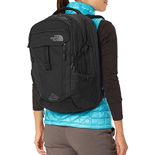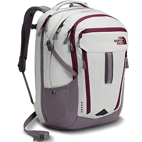 Details: From The North Face®: tackle your commute in style with the redesigned Surge daypack. Women's-specific design. Two spacious main compartments with dual-zip closure. Dedicated, lie-flat 17" laptop compartment is lined with fleece and makes for checkpoint-friendly travel. Fleece-lined tablet sleeve is padded for extra protection. Front pocket with organization panel and zip closure. Elastic water bottle pockets at sides. LED light loop. Embroidered TNF® logo. Adjustable compression straps for load management. Shoulder straps and back panel are specially contoured for female frames. Padded haul handle at top and front of bag. Capacity: 31 liters. 100% nylon. Imported. Measurements: Bottom Width: 14 in Depth: 8 in Height: 19 in Strap Length: 32 in Strap Drop: 14 in Handle Length: 7 1⁄2 in Handle Drop: 1 in Weight: 3 lbs