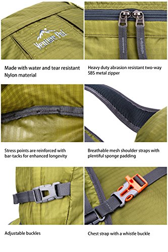 LIGHTWEIGHT(0.7LB) and ROOMY(35Liters): A true space saver. Fold the backpack into its own pocket for storage. To avoid overweight charge, simply unfold from your checked bags and use it as a carry on for your excess baggage.