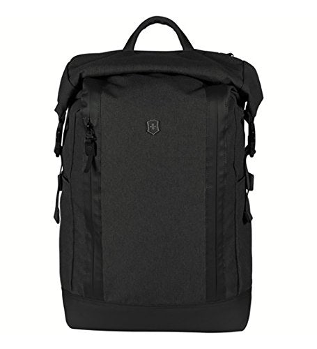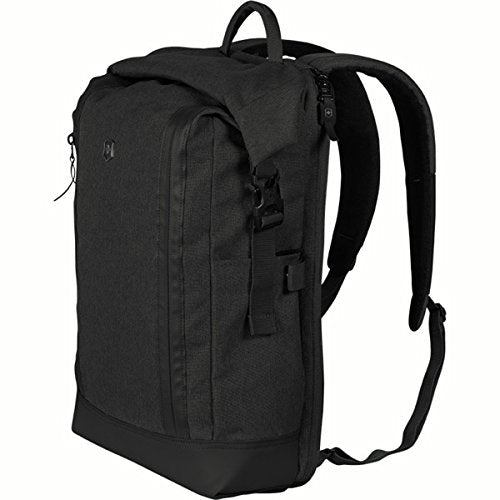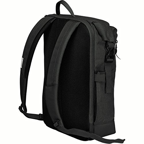 Details: Convenient and design-forward, this laptop backpack features a roll top closure with a full-length vertical zipper for easy loading. Padded, rear, side-entry compartment protects up to a 15" laptop and features lockable zipper. Roll top with vertical zipper allows full access to main compartment for easy loading. Interior organization includes a file divider and a zippered pocket with key fob and storage slots. Exterior organization includes a vertical-zip storage pocket containing a bottle opener and two adjustable-size side pockets ideal for a water bottle or umbrella. Main compartment and vertical-zip front pocket feature water-resistant zippers. Roll top closure secures with sr buckles. Padded back panel for maximum comfort. Adjustable padded, airmesh shoulder straps are webbing reinforced to bear heavy loads. Abrasion-resistant base