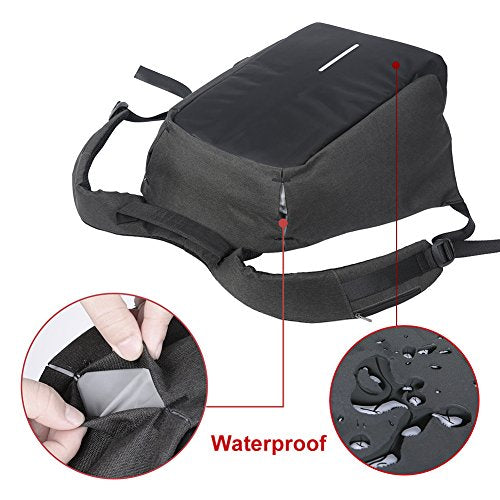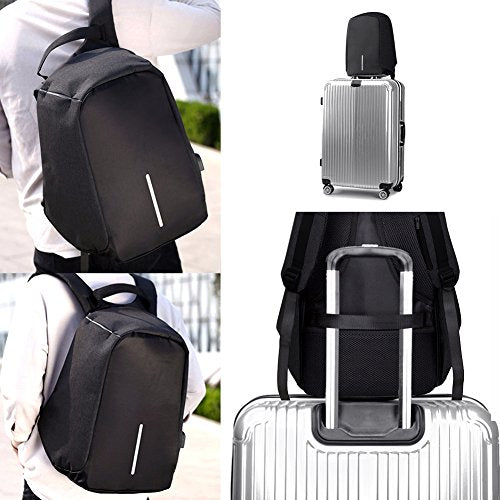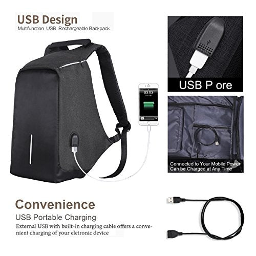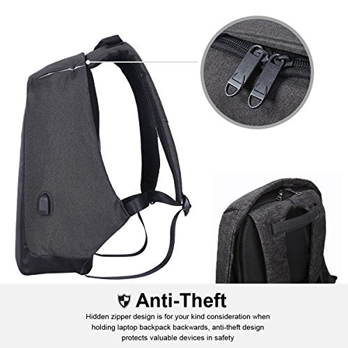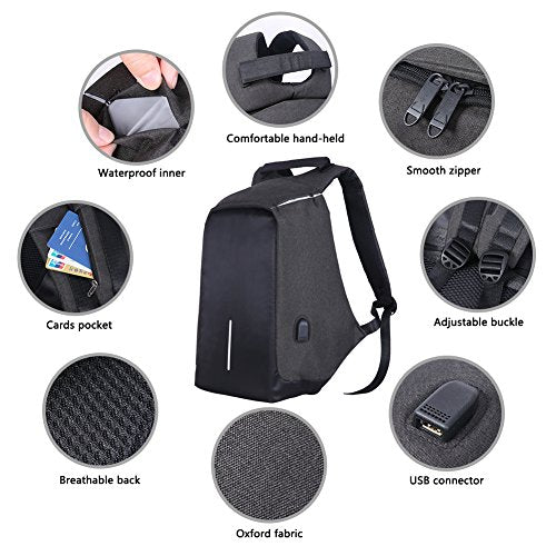 Details: This is an anti-theft laptop backpack. Main zipper hidden in the back of the bag, multi-compartments for Laptop, iPad, cellphone, passport, pen, notebook, keys, wallet, watch, power bank, books, clothes, umbrella, bottle or more, Super great backpack for college school, office work, business travel or daily casual.