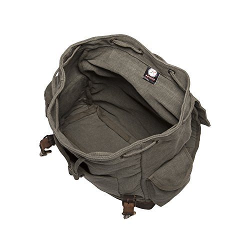 This rugged style backpack features a large main compartment, ideal for hiking gear, books, iPad, tablets, laptops, and so much more along with 3 exterior pockets fit for water bottles, keys, camera, and even your wallet. Measuring at 16.25" x 13.50" x 5.25" let worrying about space be a thing of the past. This bag features a drawstring and extra wide flap to keep your valuables secure even on your wildest outdoor adventures.