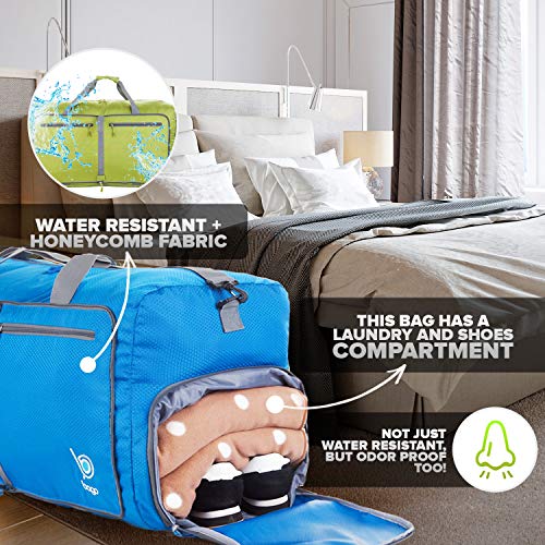 - DURABLE AND CONVENIENT: Water and odor proof outer compartment. Reliable zippers with pull strings. Honeycomb waterproof RipStop fabric resists wear and tear. A reliable travel bag or gym bag designed to last for long use. These are sturdy duffle bags, travel bags for men and travel bags for women.