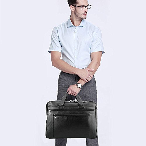 - ✔Material: Classic and professional briefcase look. The genuine leather briefcase is made with cowhide leather, cotton lining interior, high quality sturdy hardware accessories.