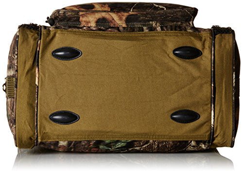 - Big main compartment opening, 2 external zipper pocket for small accessories. 2 compression straps to tighten up gear load properly and a thick padded handle for easy carry This Mossy Oak Brand duffel bag is for a person that wants to easily gain access to all their goods quickly.