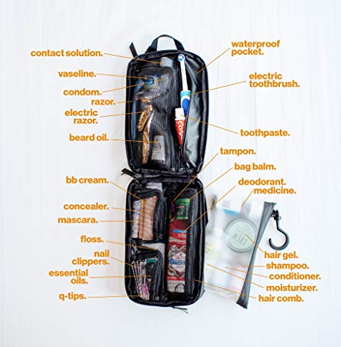 - BE A BETTER TRAVELER - Keep your toothbrush off your toenail clippers and contacts free of razor hair and soap scum; Everything gets its own pocket; Packing becomes effortless