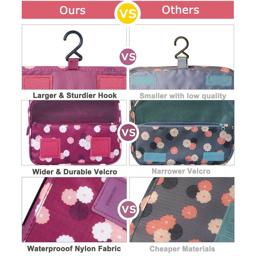 - LARGE CAPACITY - Size: 9.45 x 3.74 x 8.07 inches. Multiple pockets (with small, medium, large, and long pockets) allow you to easily store all your travel cosmetics and products. You can put your make-up, shampoo, soap, toothbrush, toothpaste, shaving kit and so on, all in one place. Make your travel comfortably and easily to have all your necessities in one bag.