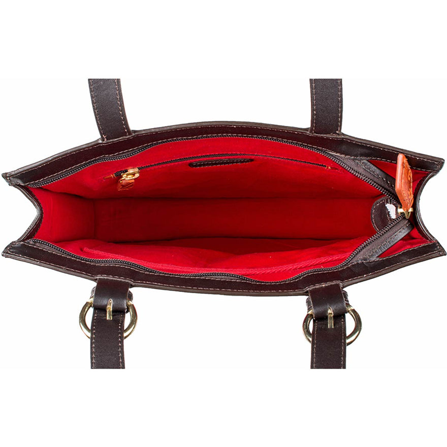 - Two leather handheld shoulder straps with a 10"" drop length.