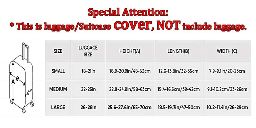- SIZE: S: Fits 18"-21" Luggage(50cm x 61cm), fits 18"-21" Luggage suitcase. M: Fits 22"-25" Luggage(52cm x 72cm), fits 22"-25" Luggage suitcase. L: Fits 26"-28" Luggage(63.5cm x 80cm), fits 26"-28" Luggage suitcase.