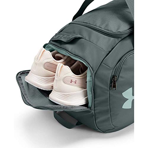 Details: UA Storm technology delivers an element-battling, highly water-resistant finish. Tough, abrasion-resistant bottom & side panels. 2 large front zippered organization pockets. Removable, padded, HeatGear shoulder strap for total comfort. Padded top grab handle. Large vented pocket for laundry or shoes & internal slip pockets for organization. D-ring for added attachment point. Dimensions When Full: 11.8"W x 24.4"H x 13"L. Volume: 3,539.4 Cubic In. / 58 L. Adjustable shoulder strap. D-Ring for additional attachment point.