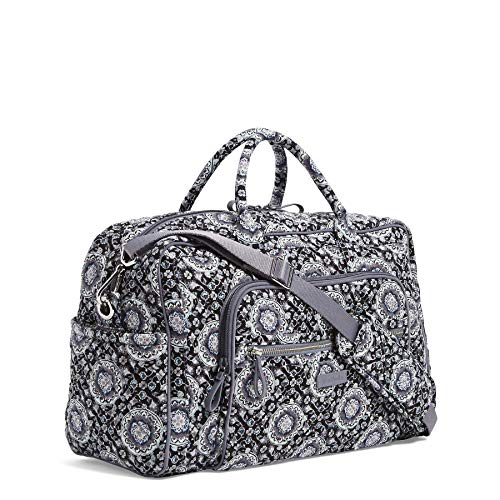 Details: Vera Bradley has thought of everything a great travel bag needs with the Iconic Compact Weekender - the perfect size, carryon compliant duffel to fit everything you need for your next adventure. The Iconic Compact Weekender Travel Bag is the fashionable solution for storing your travel essentials, packing efficiently, and avoiding checked bag fees - measuring 10 inches high, 16.25 inches wide, and 7.25 inches in diameter. The interior of this spacious duffel features five mesh pockets. Skip the extra carry on and take advantage of these pockets to organize your cosmetics, hair products, jewelry and other toiletries. The interior compartment fits about one to two outfits - perfect for the quick getaway. The exterior features one slip pocket, a charger pocket, and two zip pockets that are convenient for stowing your travel essentials – wallet, phone, boarding passes, reading material and snacks. Keep your most important items at your fingertips with pockets positioned for quick access and soundly fastened for your flight. The Iconic Compact Weekender Travel Bag keeps you hands-free so there is plenty of room for adventure. With a 4.5 inch handle drop and a 52.5 inch adjustable, removable strap, you can grab the dual straps on the go, throw over your shoulder for hands-free attention, or utilize the trolley sleeve to attach to your luggage handle so you can be mobile with multiple bags. Whether it’s a weekend getaway or a girl’s trip, Vera Bradley has designed this necessity for every traveler. When quality material meets precise craftsmanship, you get a bag made to last through all of life’s journeys. Care: Spot clean