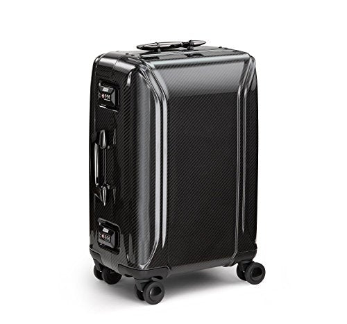 Details: Streamlined, sexy and packed with features, Zero Halliburton's newest carbon fiber carry-on luggage is the pinnacle of refined travel style. Crafted from carbon fiber composite produced by a well-known artisan in Japan, each piece is individually made in a painstaking, time-consuming production process similar to that used in the creation of high-performance motorcycles and race cars. The case is heated in a special mold and after it's cooled, it is treated with a proprietary coating that increases its durability and scratch-resistance. The coated shell is then polished to a high-gloss finish. To enhance its aerodynamic appeal, the case is designed without a frame yet maintains the utmost security through draw bolt latches and TSA-approved combination locks. Adding to the carry-on bag's lightweight, ergonomic appeal, it glides along quiet, sealed ball-bearing spinner wheels while a textured, dual release, multi-position telescoping magnesium handle system doubles to provide both good looks and convenient function. The Carbon Fiber case also boasts a fully lined interior, multiple pockets, and a dividing panel 7.9lb / 14.0W x 9.0D x 21.0H in