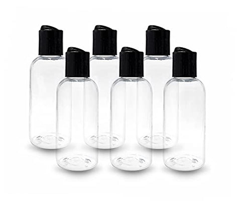 ljdeals 4 oz Clear Plastic Empty Bottles with Black Disc Top Caps, Refillable Containers for Shampoo, Lotions, Cream and more Pack of 6, BPA Free, Made in USA