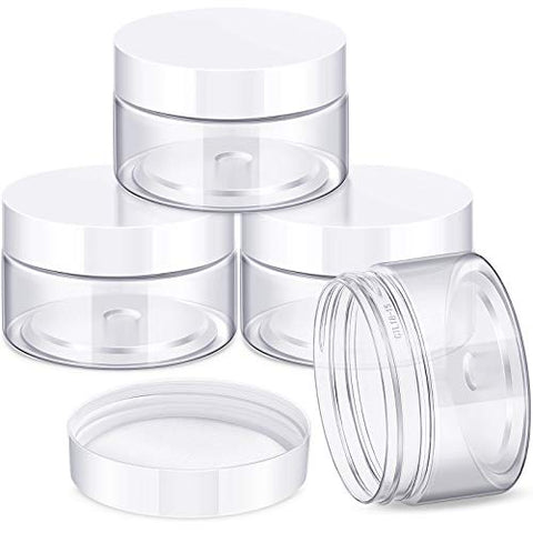 4 Pieces Round Clear Wide-mouth Leak Proof Plastic Container Jars with Lids for Travel Storage Makeup Beauty Products Face Creams Oils Salves Ointments DIY Slime Making or Others (1 oz, White)