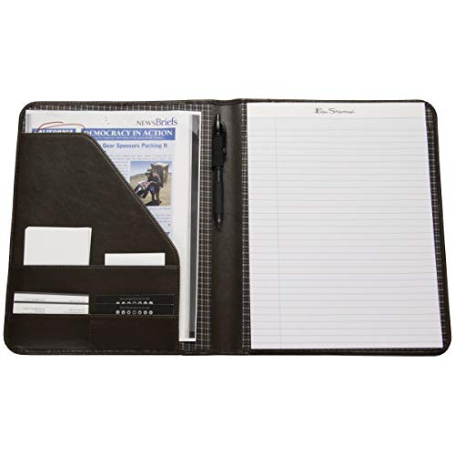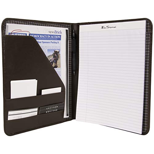 Details: Leather-Like PVC Open Style Bifold Writing Pad. Durable, Leather-Like Vinyl Exterior And Fully Lined Colorful Interior. Open Style Construction. Left Interior File Organizer Features A Flap File Pocket, An Open Top Pocket, Two Business Card Open Pockets, And Pen Loop. Right Interior Features Slot For Writing Pad And Full Length Slip Pocket Behind Writing Pad. Ben Sherman Lined Writing Pad Included. Size: 12.0" H x 10.0" W x 0.25" D. Weight: 1.3 lbs.