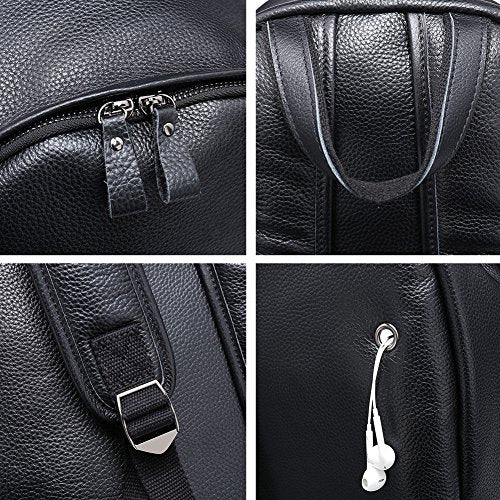 - ✡ Leather laptop backpack,travel rucksack black, outdoor travel bag, bookbag for women men