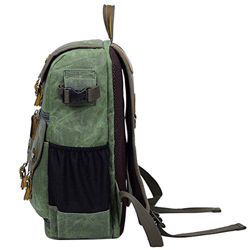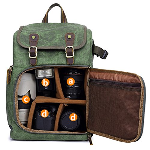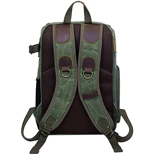 - Large space roomy leather canvas laptop backpack with multiple compartments which holds lots of stuff. Very easy to organize your things