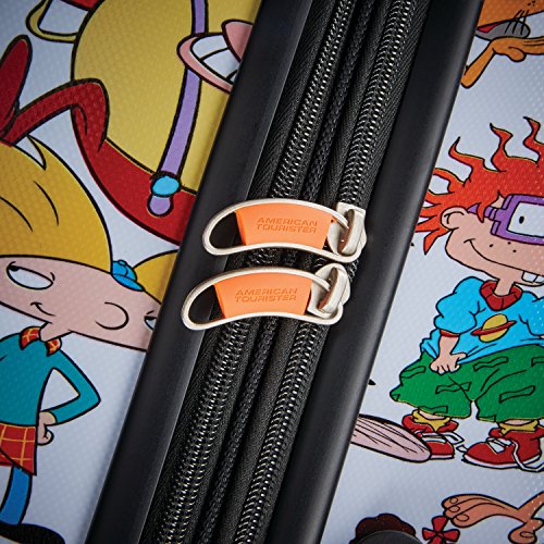 Details: Show your love for your favorite nickelodeon 90s mash up with this hardside spinner travel case from American Tourister. The American Tourister nickelodeon 21" spinner is made from lightweight and durable scratch resistent material and features a sleek design with single spinner wheels, an easy pull handle, and a top grab handle for easy lifting. The interior is fully lined and detailed with crisscross tie-down straps to hold clothing in place. Detailed with colorful graphics of your favorite nickelodeon mash ups, this case is perfect for boys and girls on the go. Pack more fun with this nickelodeon luggage!