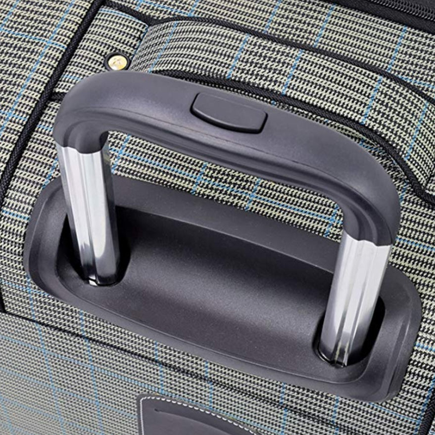 - Durable woven plaid or tri-weave ballistic solid, hyper light chassis with grid base and ergonomic locking handle with tpr grip and aluminum channel tubes for added strength