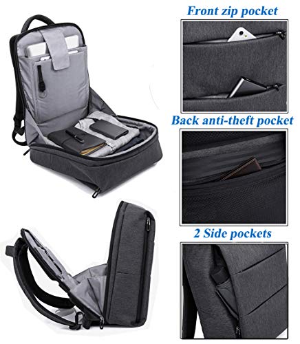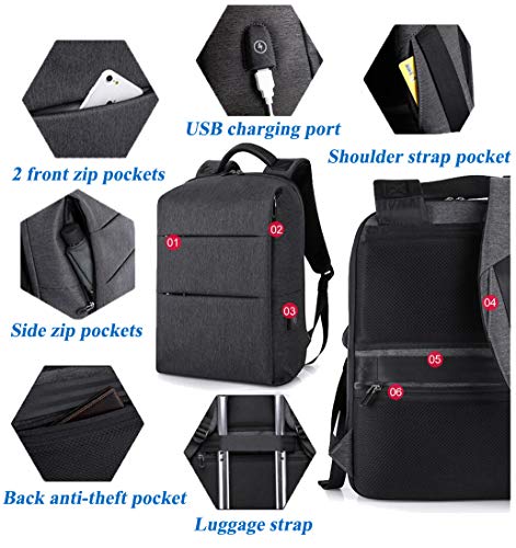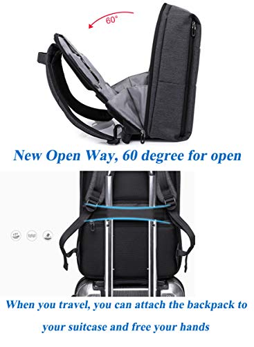 - FUNCTIONAL & SAFETY: 1.With a hidden anti theft zipper pocket on the back protect your valuable items or passport from thieves. 2.Back luggage strap allows backpack fit on luggage, slide over the luggage upright handle tube for easier carrying, Don't have to carry the backpack. 3.opens quickly at airport security. Best travel or business laptop backpack