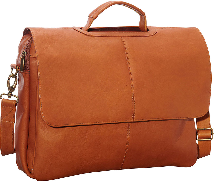 Carry your personal and professional items for the daily commute inside this sleek and sophisticated leather brief bag from Le Donne Leather. The Le Donne Leather Flap Over Computer Brief is handcrafted from full grain vacquetta cowhide leather and features a professional, elegant design with a flap top, a magnetic front closure, and multiple pockets to organize all of your essentials. This bag includes a padded computer sleeve for your laptop, a rear compartment, a rear zipper pocket, and an organizer compartment with pockets to hold your cell phone, pens, business cards, and other small items. A single top handle and an adjustable shoulder strap provide versatile carrying options to suit your personal style.