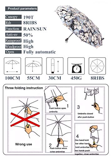 Details: The umbrella uses a special reverse folding technique to capture all the rain in the umbrella. This means don't wet stains and dripping water in your car, living room, or anywhere else! Ergonomic c handle -- easy to walk without a hand when answering a phone, handling a shopping bag, a baby, or even holding a child's hand. The comfortable c-shaped handle lets you slide past the forearm or wrist so you can focus on something more important. It's the best parasol. Our fashionable umbrella is light in weight, small in size, convenient to carry, quick drying and corrosion resistant.
