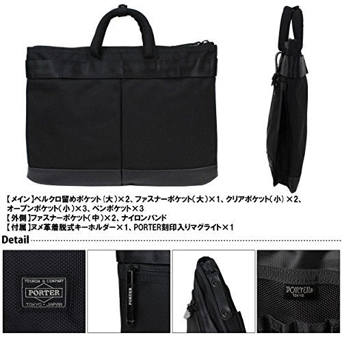 - Material table: Varistor nylon (urethane coating) attached: Tarpaulin 【Main】 Velcro closure pocket (large) × 2, fastener pocket (large) × 1, clear pocket (small) × 2, open pocket (small) × 3, pen pocket × 3 [outside] fastener pocket (middle) × 2 , Nylon band 【attached】 Nume leather detachable key holder × 1, PORTER engraved mugrite × 1