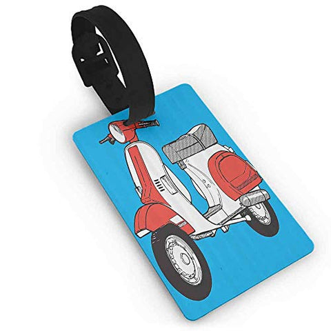 Men Luggage Tag Funky Decor,Cute Scooter Motorcycle Retro Vintage Vespa Soho Wheels Rome Graphic Print,Blue Red White Suitcase bags pendant