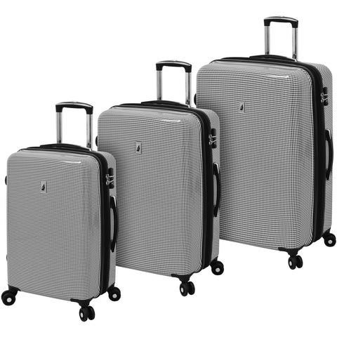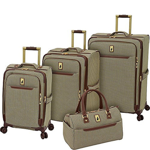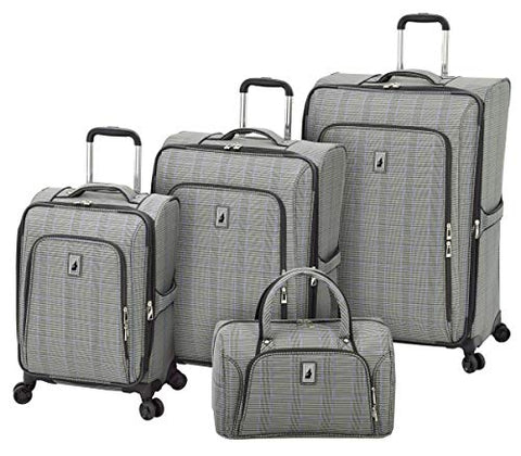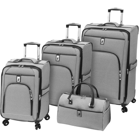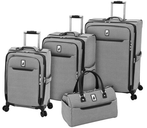 London Fog Cambridge II 4 Piece Set (Satchel, 20", 25", 29"), Black White Houndstooth