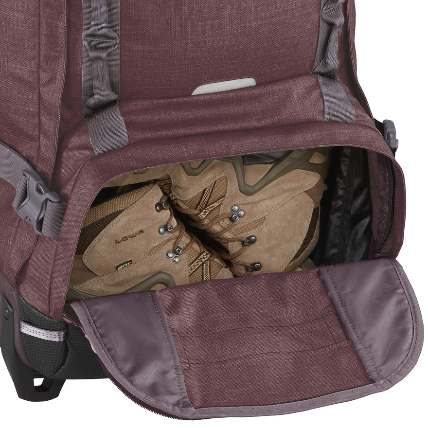 - EXPANDABLE STORAGE. An expandable seam-taped wet and dry compartment keeps clothes or shoes separated. The Cargo Net material compresses belongings for stable travel and padded sleeves offer secure storage for electronics including laptops and tablets.