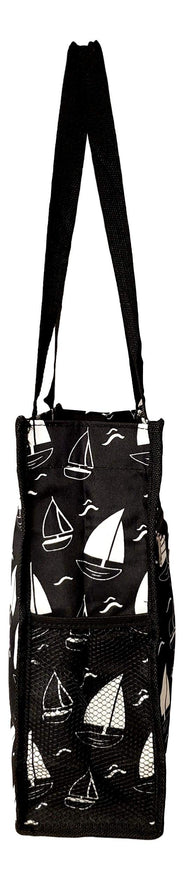 Details: Mesh water bottle pocket on side ---- 2 exterior pockets for easy access -1 Zipper and 1 Slip ---- Zipper Top Closure and Hook / Loop Closure ---- Includes matching coin purse - Lined --- Measures 12" wide x 13" tall x 4" deep