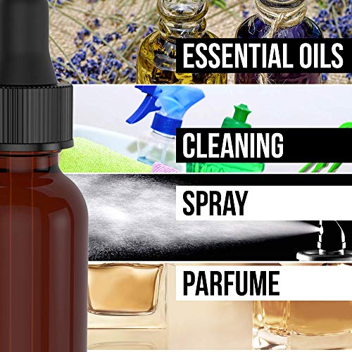 - MULTI-PURPOSE SAFE STORAGE FOR EOS AND OTHER LIQUIDS - are you concerned about the safe storage of your essential oils, perfumes, sprays, and cleaning solutions? Take advantage of our spray bottles that are built to safely store any type of liquid. UV protected amber glass surface makes sure that your product is safeguarded from Ultraviolet radiation. Whether you're simply storing your favorite oil for daily use, or repackaging product for sale, this pack will suffice.