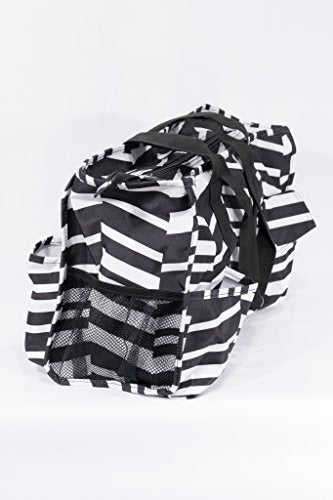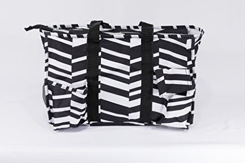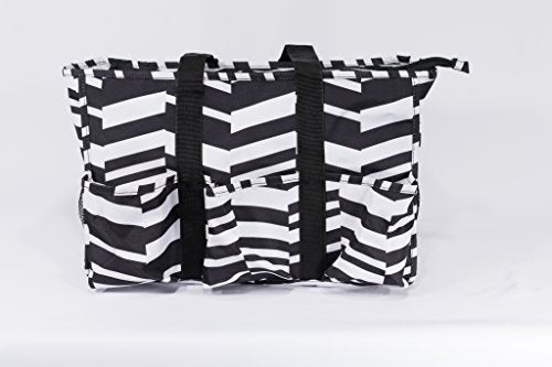 7-Pocket Tote Bag With Zipper (Black and White Zig Zag)