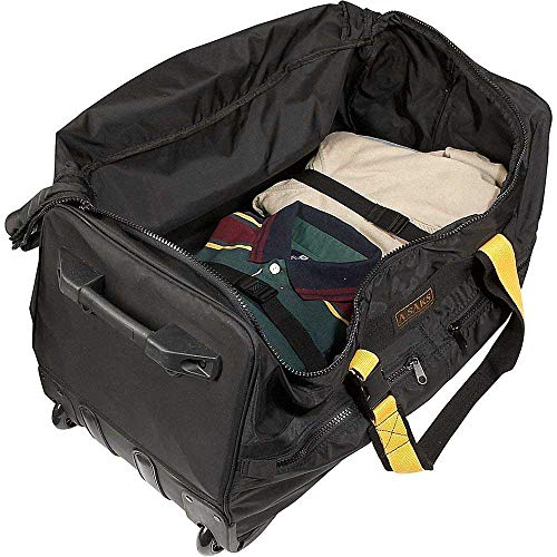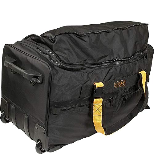 - Mid-sized, lightweight and durable, the A. Saks EXPANDABLE 25" Wheeled Duffel features a spacious, zippered main compartment with large U-shaped opening for easy packing, 2 exterior pockets, stow-away trolley handle, nylon carry handles, bottom lift handle and in-line skate wheels for smooth rolling.