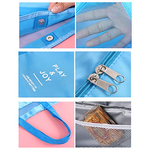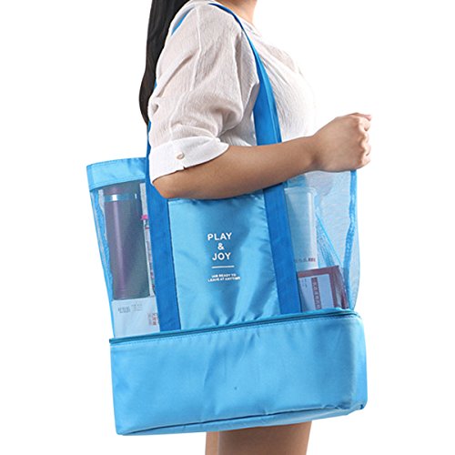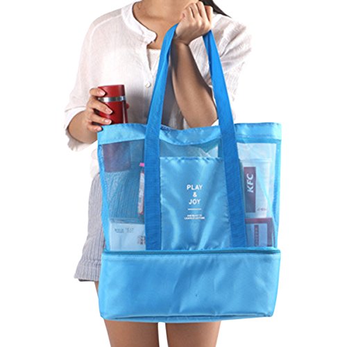 Details: ABage Women's Tote Bag Summer Mesh Beach Shoulder Bag Travel Insulated Cooler Bags, Blue