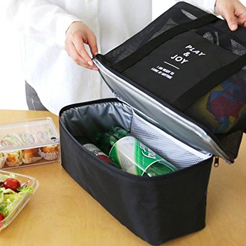 - Magnetic snap top closure for easy access to the main mesh compartment, top handles, dual zipper closure for the insulated compartment