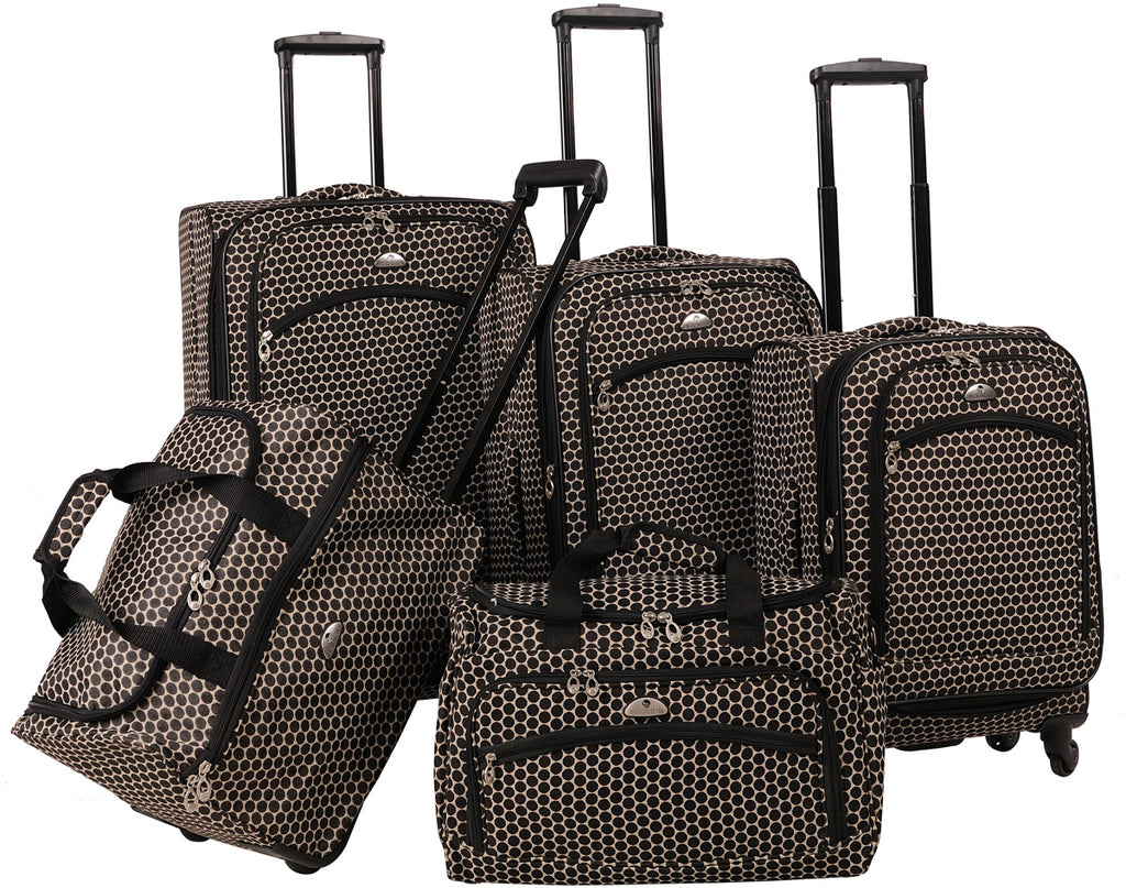 - Uprights: Exterior - 2 large front layered pockets Interior - 3 pockets 1 side zippered 1 meshed zippered 1 divided shoe pocket. Wheeled Duffel: 1 front pocket. Personal duffel: 2 pockets one meshed zippered 1 divided shoe pocket. 1 lbs