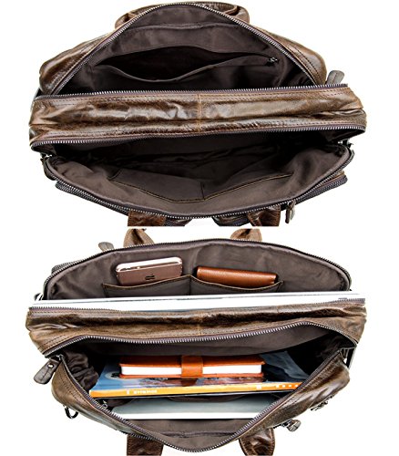 • ☆ Leather Briefcase Dimensions: 15"x 6"x 10.5"(L 38x W 15x H 27cm ); Net Weight: 4.19pounds; Note:manual measurement with 1-2 cm error. This is a Stylish & large capacity real leather briefcase that can hold 14inch laptop, Papers and Books etc. It is made from high quality real leather