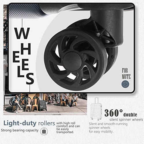- ABS+PC material, durable and lighter hard shell, features textured finish to prevent against scratches. The beveled edge design on the upper part increases toughness for the luggage.