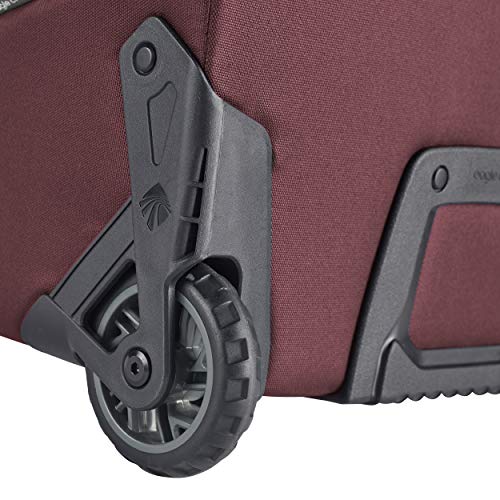 - DURABLE TRAVEL. This duffel allows you to conquer any surface with oversized treaded wheels. Two rolling spinner wheels help provide great grip and traction from the airport to the street, and the street to gravel so you're luggage doesn't slow you down.